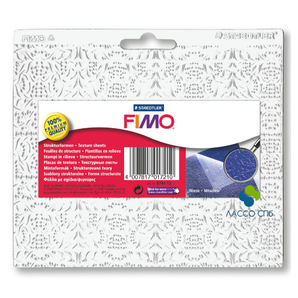 Текстурные листы FIMO позволяют Вам с легкостью создать дизайн на любой поверхности для экстравагантных эффектов. Очень легкие в использовании:Положите, нажмите, снимите - и готово!Прозрачный материал идеален для точного расположения, гибкий и прочный, подходит для прямых и изогнутых объектов. Идеален для создания изделий в технике "фроттаж"(цветной отпечаток), используя масляную пастель.