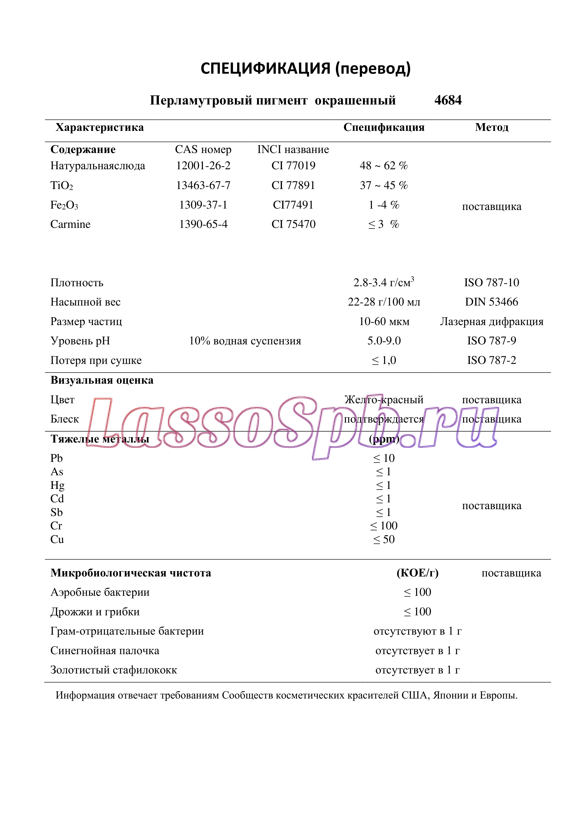 Состав : Натуральная слюда, диоксид титана, оксид железа, кармин
