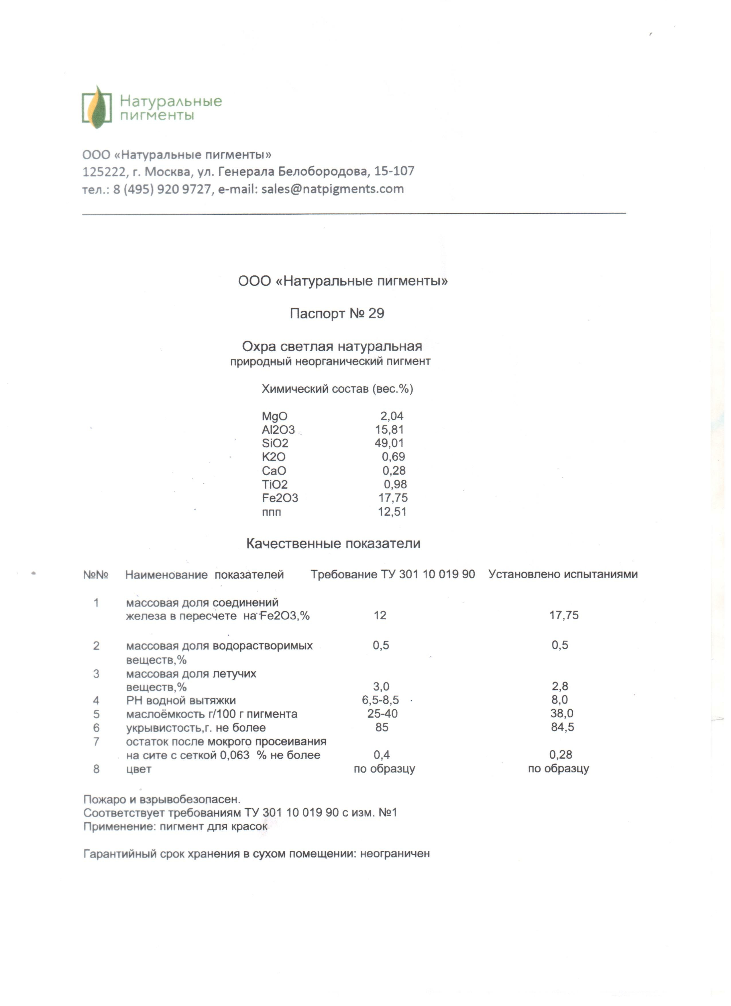 Состав : Глинистая горная порода с содержанием оксидов железа 14-16 %