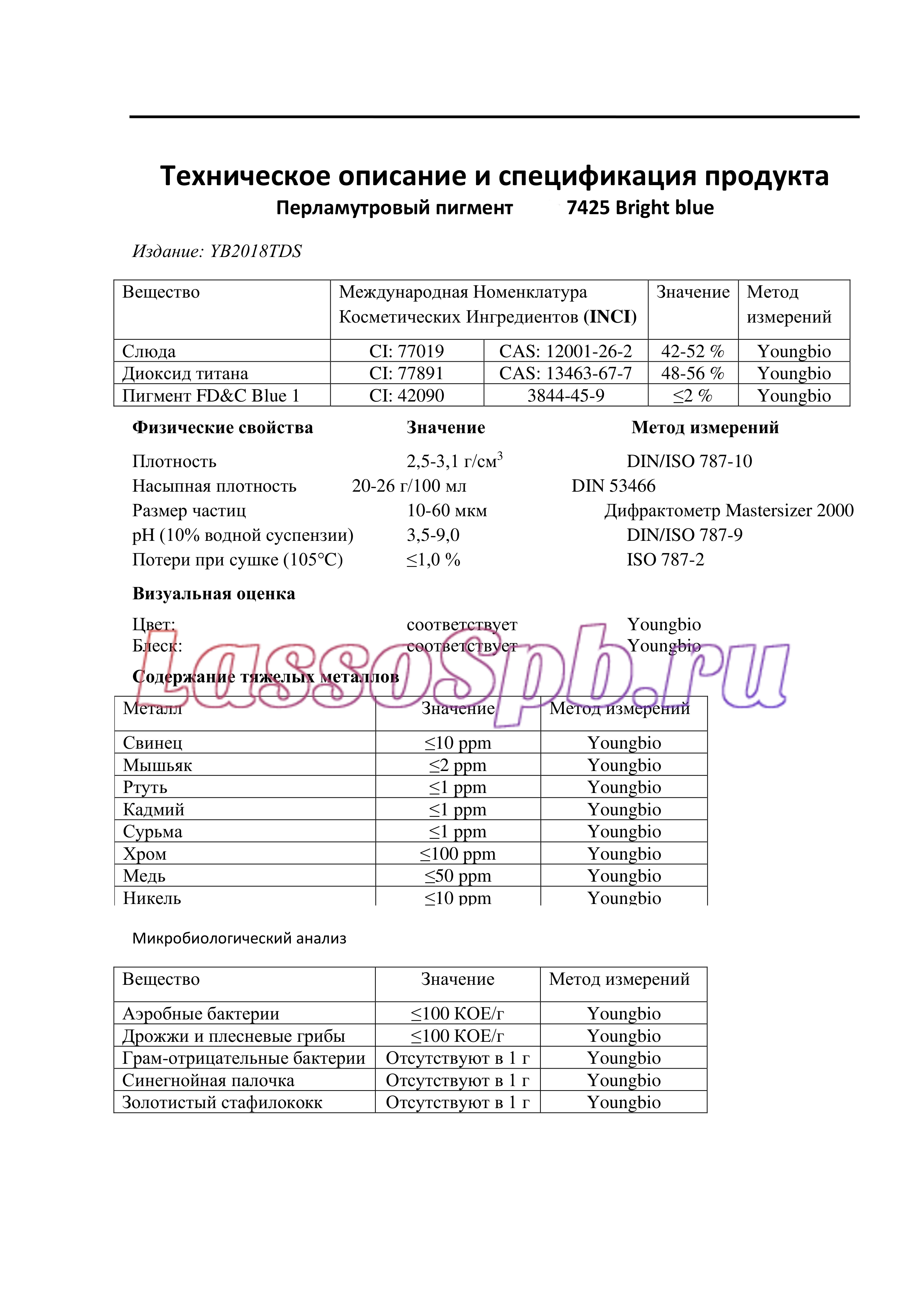 Cостав : Слюда, диоксид титана, синий пигмент