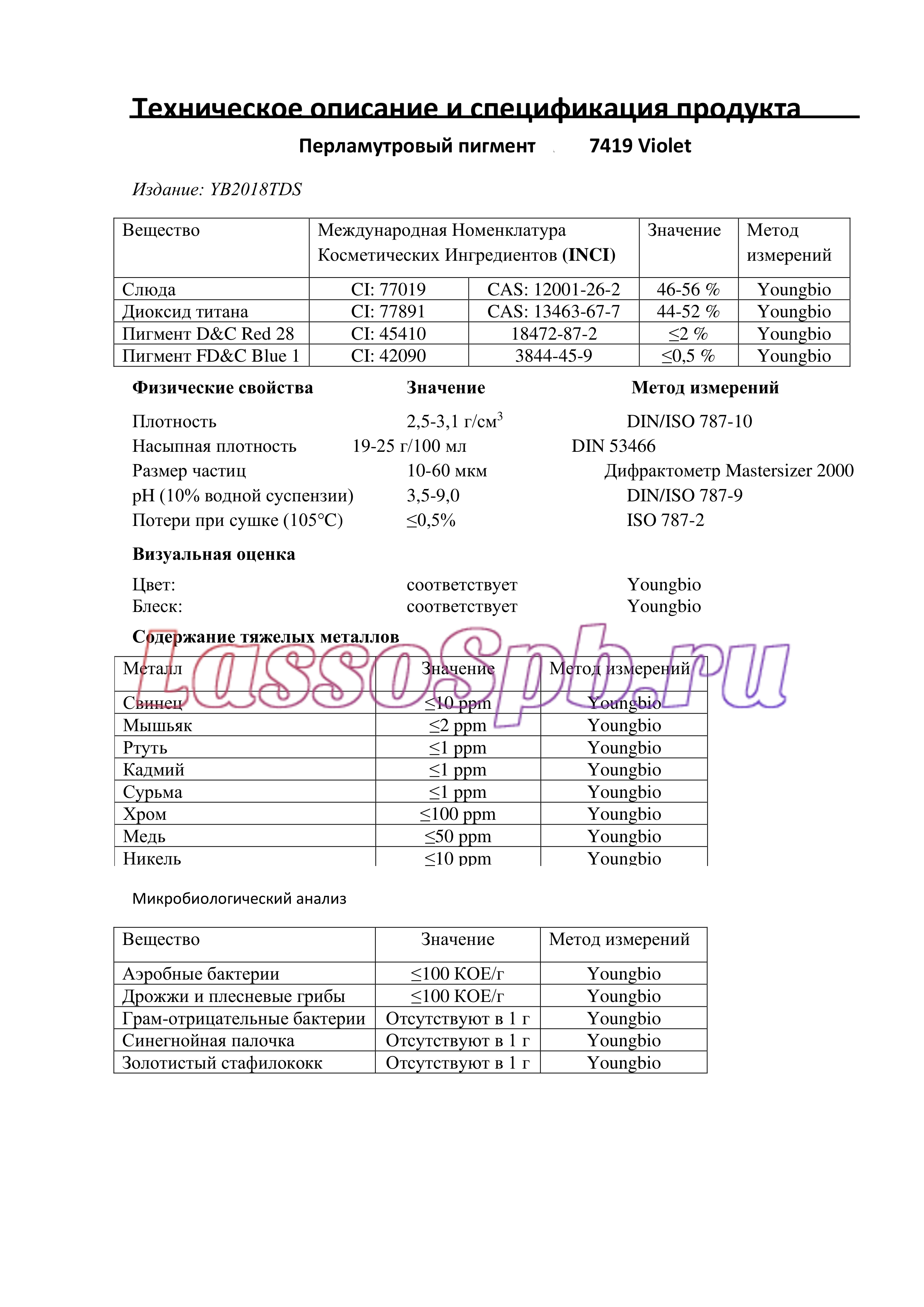 Состав : Слюда, диоксид титана, пигмент красный, пигмент синий